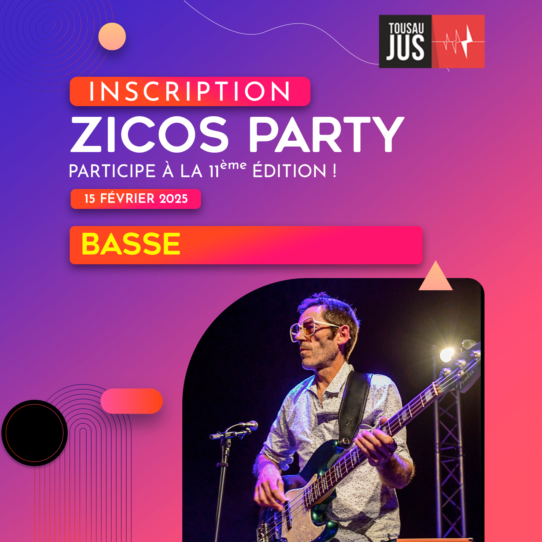 Rejoint l’expérience unique de la Zicos Party comme bassiste.
